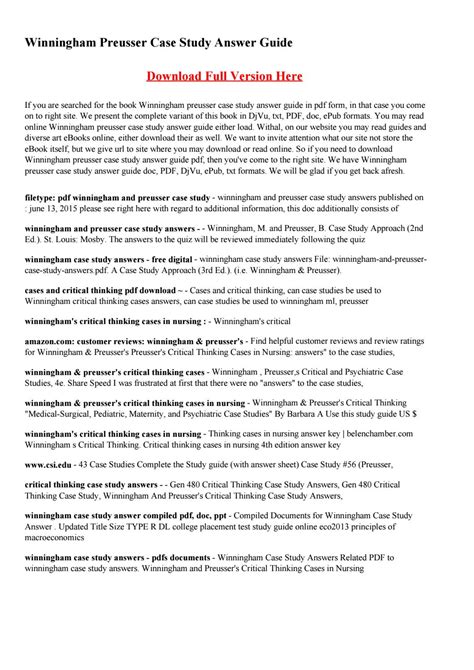 Reading Online winningham case study instructor manual Nook Gutenberg